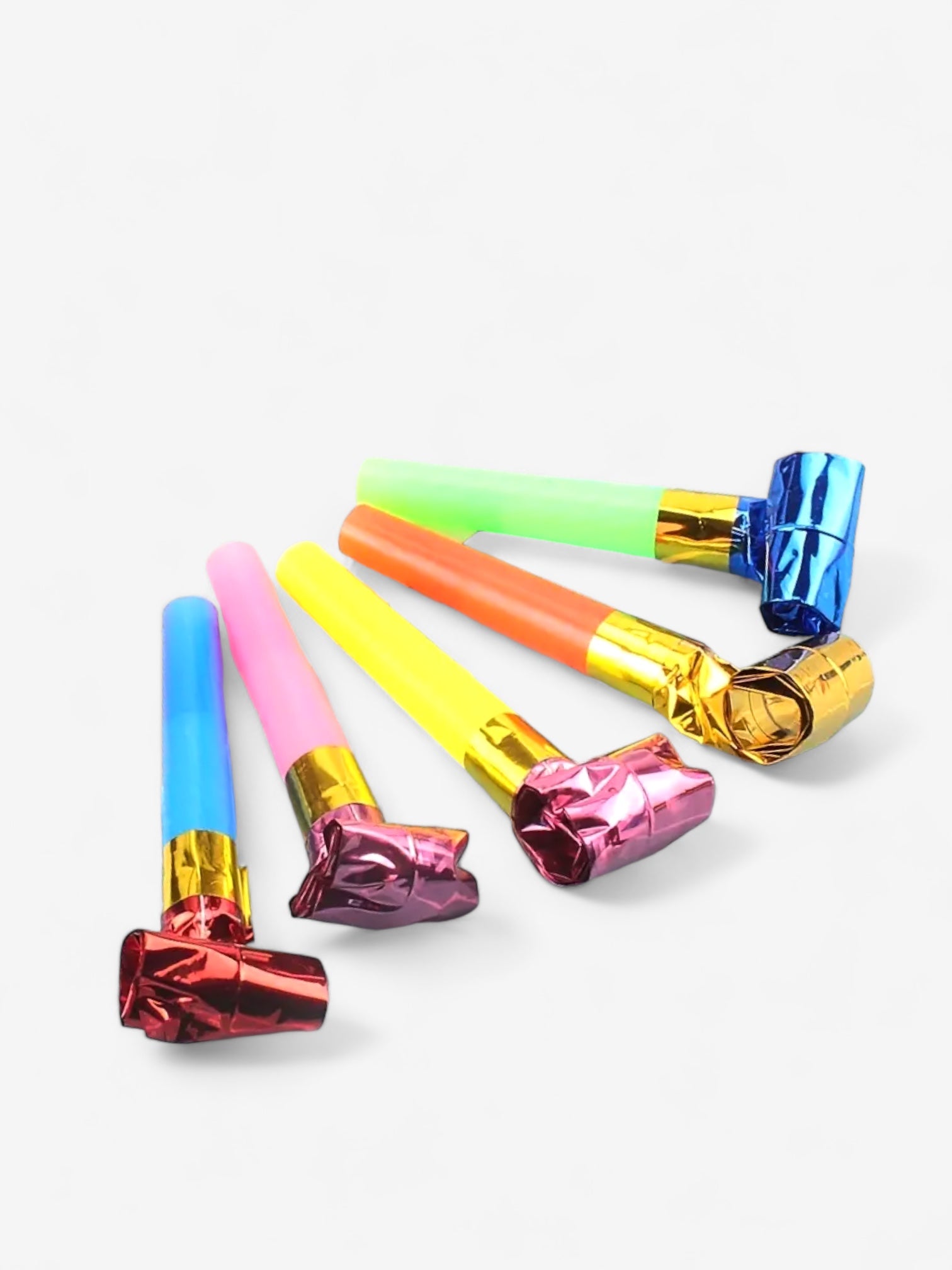 - 10 små blåsormar i en rad blandade färger. Dessa är utmärkta för att blåsa och göra roliga ljud, vilket säkert kommer att glädja de små gästerna.