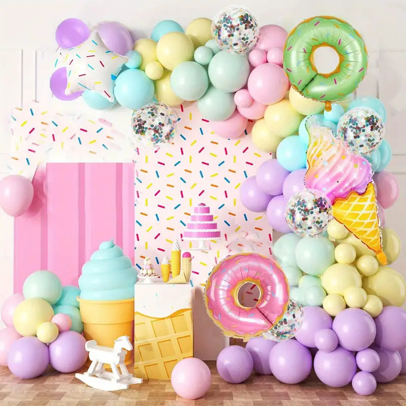 Skapa en festlig och magisk atmosfär med vår Ballongbåge - 140 stycken i Pastell, Glass och Donut, och låt din fest bli minnesvärd och färgstark! 🎈🍦🌟