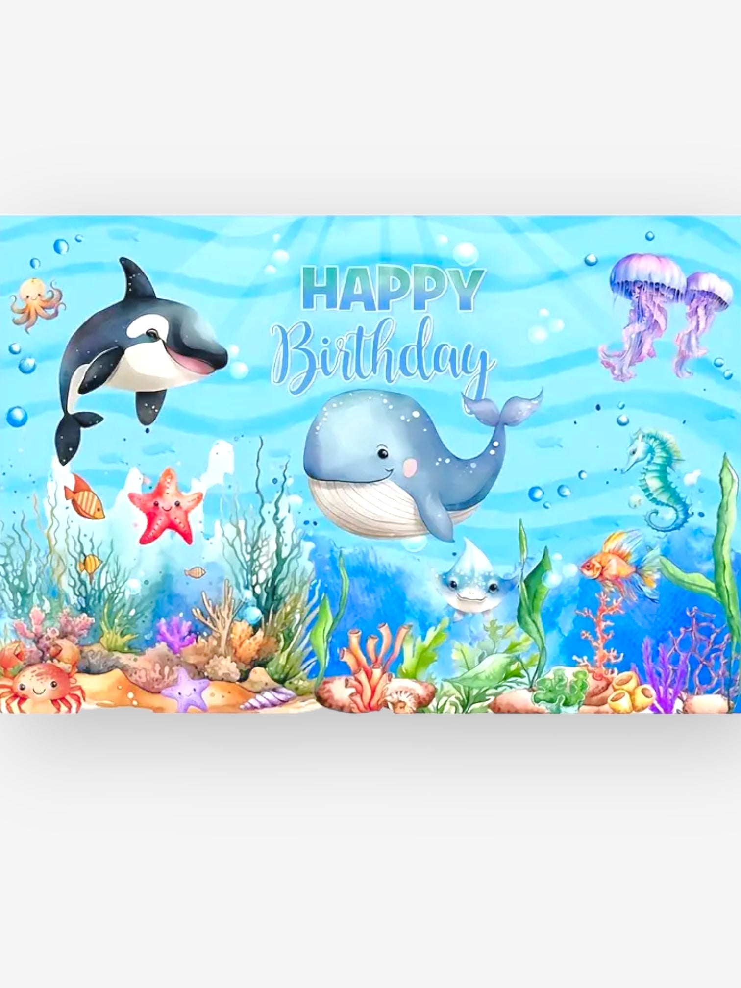đ Storlek: 150x100 cm đ Tema: Hav och havsdjur đ AnvĂ€ndning: Perfekt som fotobakgrund eller festdekoration pĂ„ barnkalas med havstema đš Material: Slitstarkt material anpassat för upprepade anvĂ€ndningar