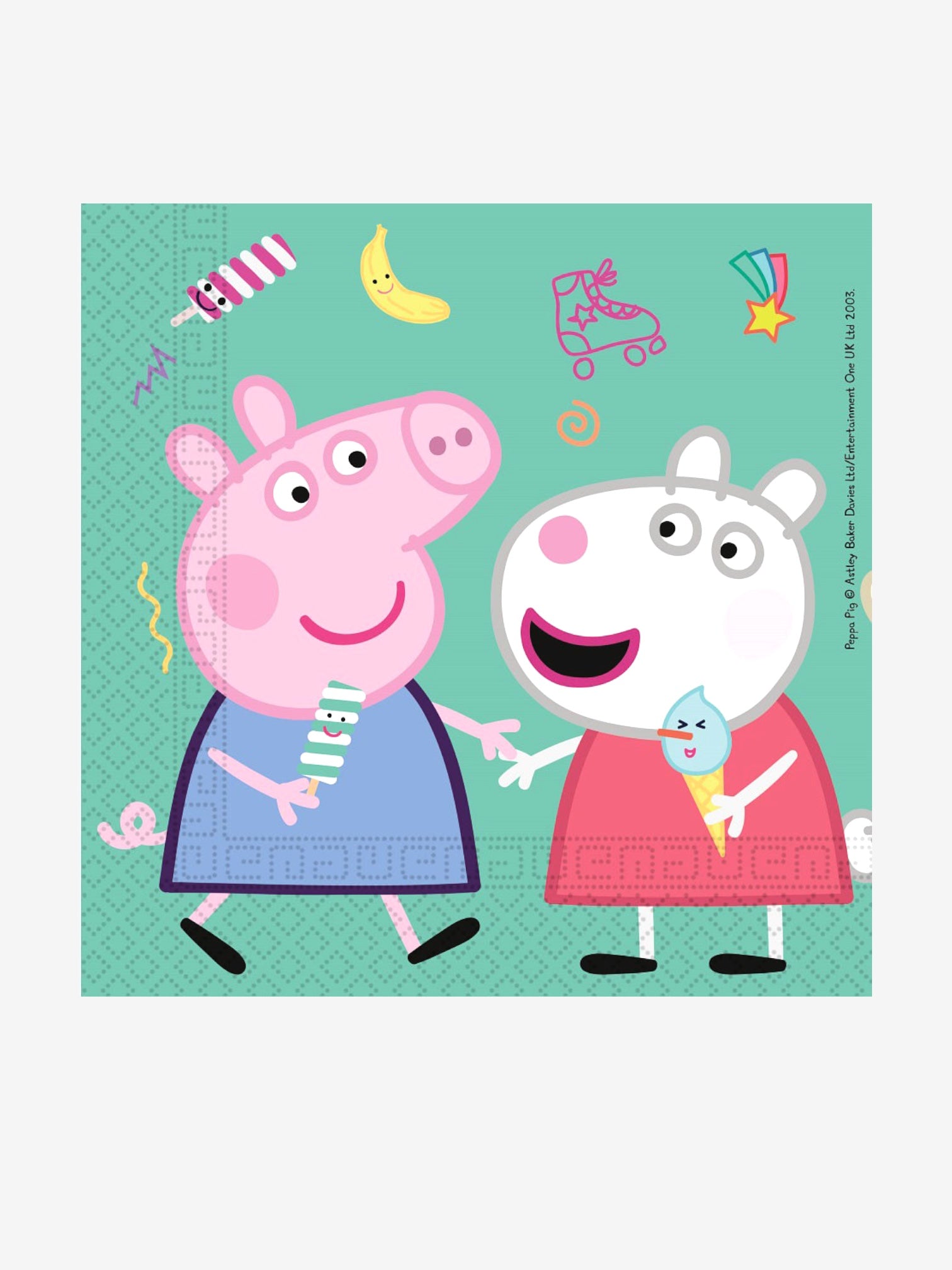 - Dessa servetter Àr dekorerade med fÀrgglada motiv av den Àlskade karaktÀren Greta Gris, vilket gör dem till ett roligt och festligt tillskott till kalaset. De Àr idealiska för att hÄlla smÄ hÀnder och ansikten rena under festligheterna.