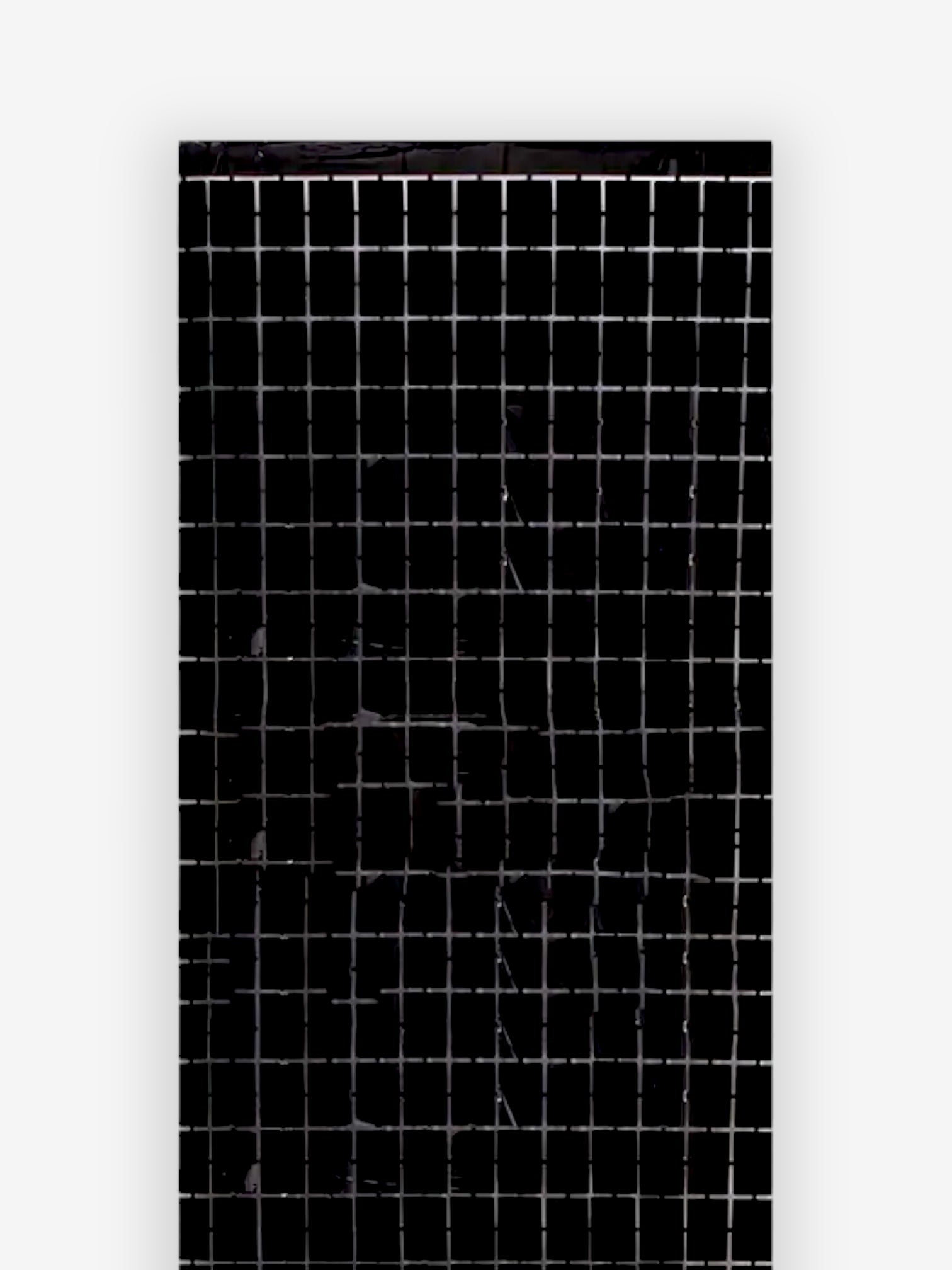 🌟 Storlek: 200x100 cm ✨ Design: Rutig ✨ Färg: Metallic svart 🎉 Användning: Perfekt för att skapa en distinkt och elegant atmosfär vid kalas, bröllop, och andra evenemang där en dramatisk bakgrund önskas 🎈 Material: Glittrigt tyg