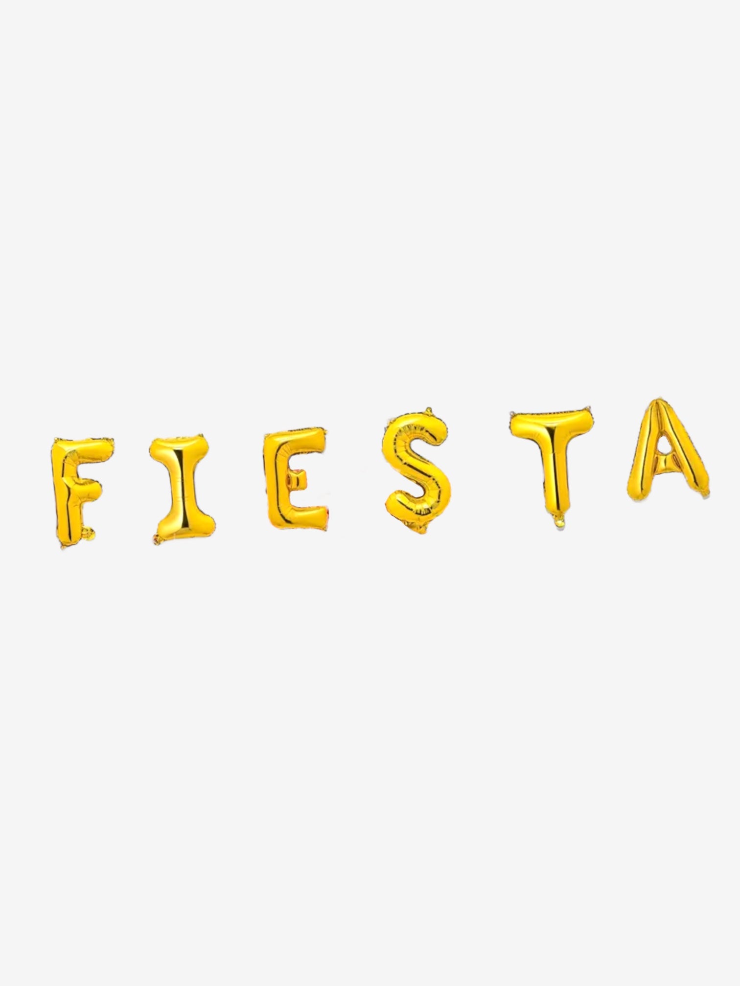 - Denna uppsÀttning innehÄller 6 delar, en för varje bokstav i ordet "FIESTA", tillverkade i högglansig folie i en iögonfallande guldnyans som garanterat drar blickarna till sig.