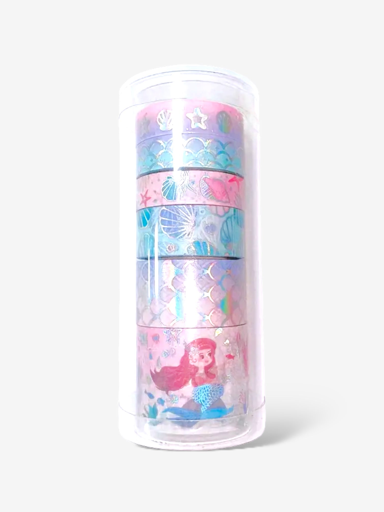 đ§ââïž Förvandla dina hantverksprojekt eller festdekorationer med detta set av 6 rullar tejp med sjöjungfrutema. Varje rulle Ă€r 3 meter lĂ„ng och kommer i blandade bredder, perfekt för att lĂ€gga till en magisk och skimrande touch till inbjudningar, scrapbooks, gĂ„voinpackningar och mycket mer.