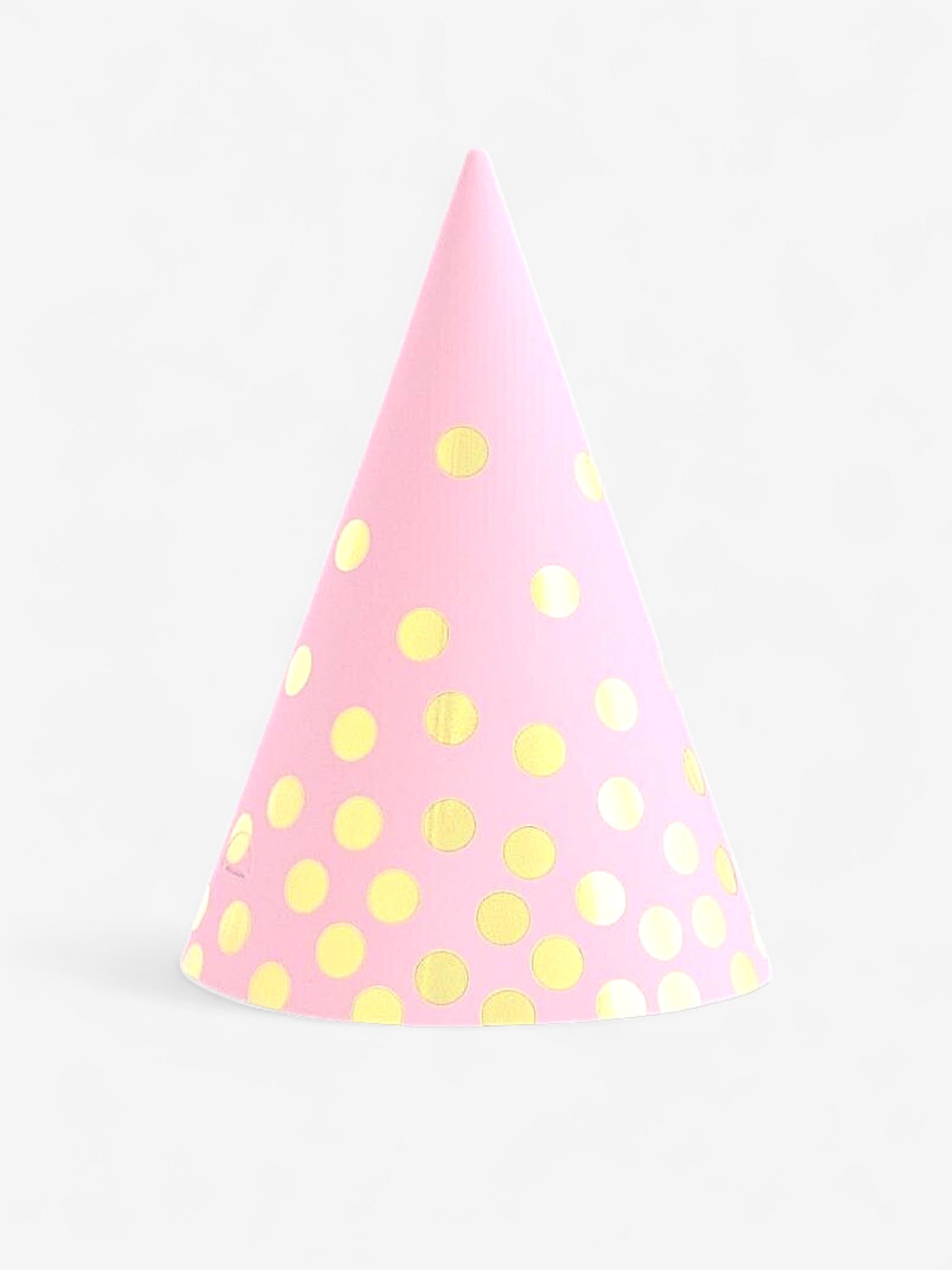 - Dessa partyhattar Àr dekorerade med eleganta guldprickar pÄ en rosa bakgrund, vilket gör dem till ett charmigt och stilfullt tillskott till kalaset.