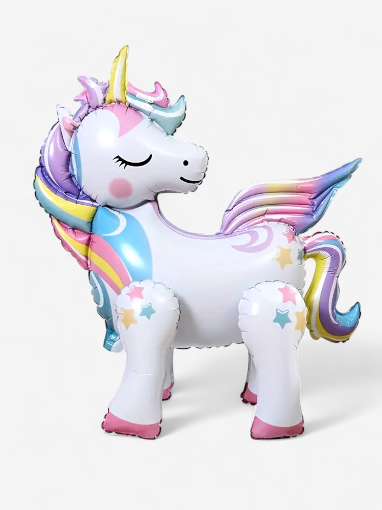 🦄 Ge ditt evenemang en magisk touch med denna 62x57 cm stora 4D folieballong formad som en stående enhörning. Perfekt för födelsedagskalas, temafester eller varje tillfälle som kräver en dos av fantasi och förtrollning.