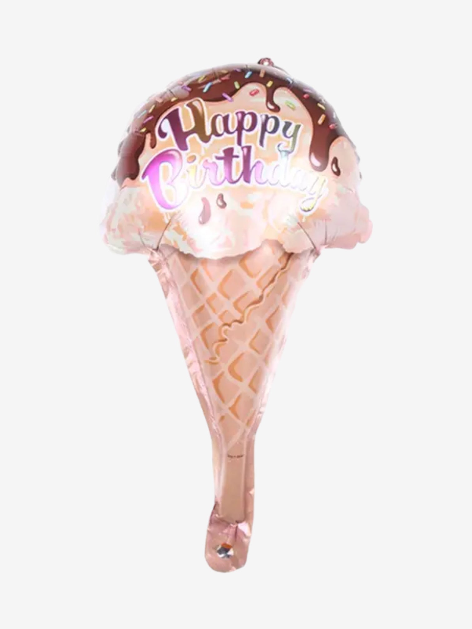 đŠ Fira en speciell födelsedag med denna festliga folieballong formad som en glasstrut med strössel. Dekorerad med texten "Happy Birthday", gör denna ballong varje födelsedagsfirande extra glĂ€djefyllt och fĂ€rgrikt.