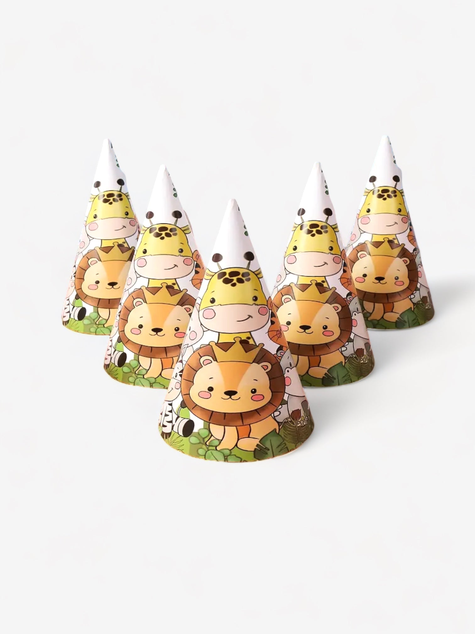 6 stycken - Partyhattar Safari Djungel lejon och giraff